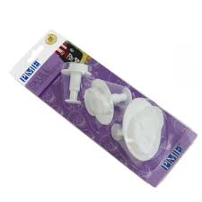 Vykrajovačku priložíme na vyvaľkanú hmotu. Príslušný tvar vykrojíme bez stláčania piestu, teda len pritlačením obvodu vykrajovadla. Vykrojený tvar nám zostane vo vnútri. Teraz pomocou piestu hmotu vytlačíme von.Veľkosť vykrojeného vzoru je cca -3,5 cm, 5 cm, 6,5 cm. Čítajte viac