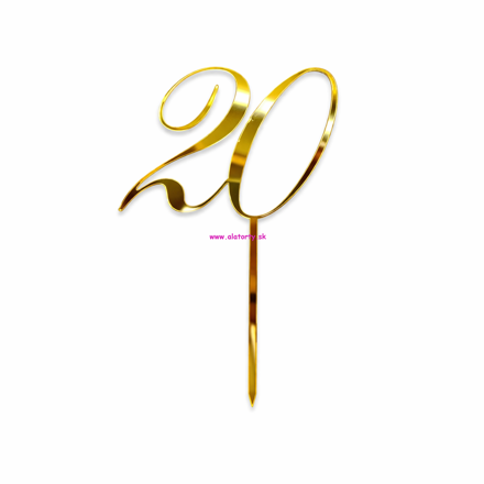 Zrkadlový akrylový zápich zlatý s číslom 20. Nejedlá dekorácia vyrobená laserom – ideálna na torty a oslavy. Výška celého zápichu je cca 16 cm, výška čísla je cca 9cm, šírka cca 6,5 cm. Čítajte viac